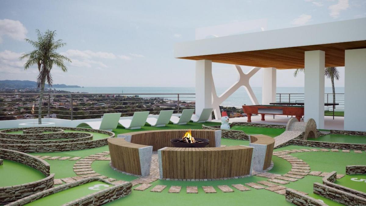 – Cine al aire libre, jacuzzis panorámicos, golfito, fogata, terraza verde, jardinerías, piso antideslizante y vista panorámica.